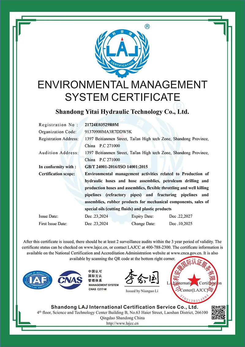 گواهینامه سیستم مدیریت زیست محیطی (منطبق با GB/T24001-2016 ISO14001: 2015)