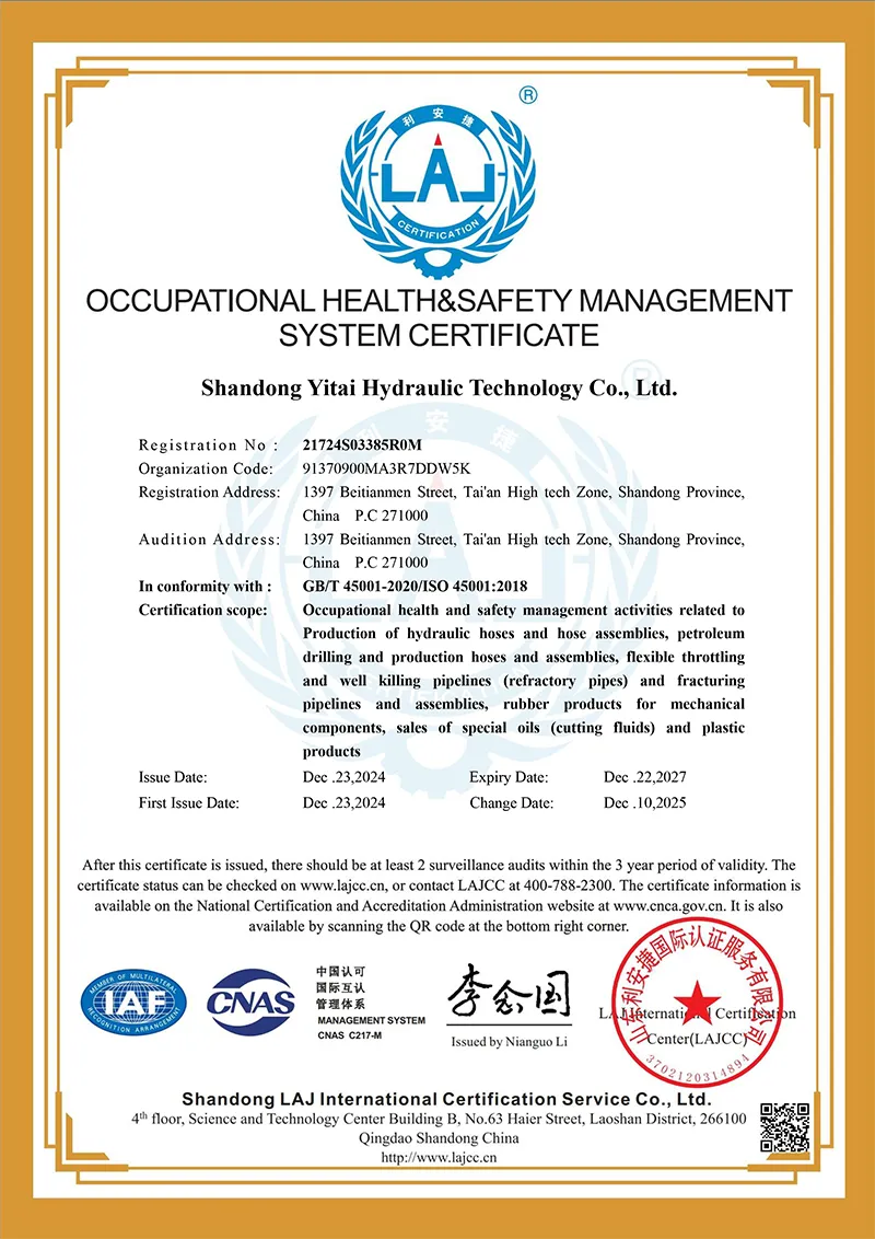 گواهینامه سیستم مدیریت بهداشت و ایمنی شغلی (منطبق با GB/T45001-2020 ISO45001: 2018)