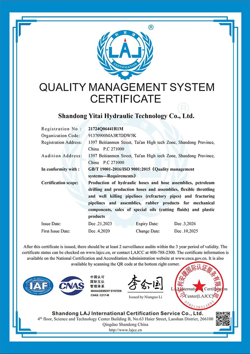 گواهینامه سیستم مدیریت کیفیت (منطبق با GB/T19001-2016 ISO9001: 2015)